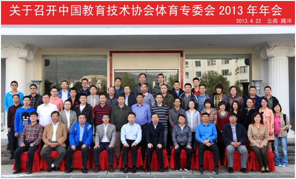 2013年中国教育技术协会普通高等学校体育电教专业委员会于2013年4月21日-25日在云南腾冲举行,会议由云南师范大学承办。来自全国33所高校的59位代表参会,中国教育技术协会秘书长刘雍潜研究员,云南师范大学党委副书记程志青,体育电教专业委员会理事长钟秉枢教授,北京体育大学党委副书记专委会常务副理事长程建平等领导参加了会议。
